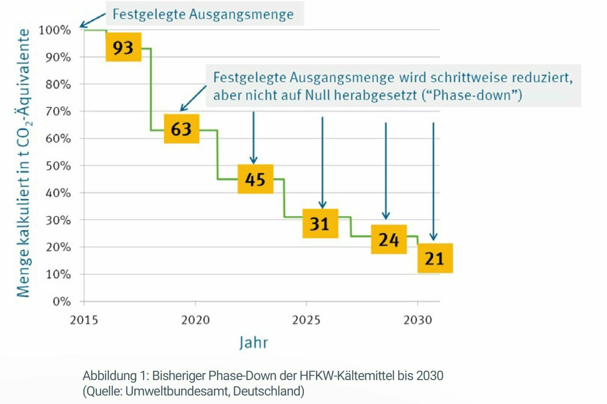 Aufgrund des Vorschlags zur Beschränkung von PFAS (per- und polyfluorierte Alkylsubstanzen), von den Behörden in Dänemark, Deutschland, den Niederlanden, Norwegen und Schweden am 13. Januar 2023 bei der ECHA eingereicht, steht ein Verbot einiger tausender Substanzen im Raum. Der Vorschlag zielt darauf ab, PFAS-Emissionen in die Umwelt zu verringern und Produkte und Verfahren für Mensch und Umwelt sicherer zu machen. Ein Verbot würde diverse Kältemittel betreffen, darunter alle HFO-Kältemittel und einige etablierte Kältemittel, die auch Bestandteil von Kältemittelgemischen sind. Insbesondere die HFO-Kältemittel zersetzten sich in der Atmosphäre zu TFA; ein hochmobiles und persistentes kurzkettiges PFAS.