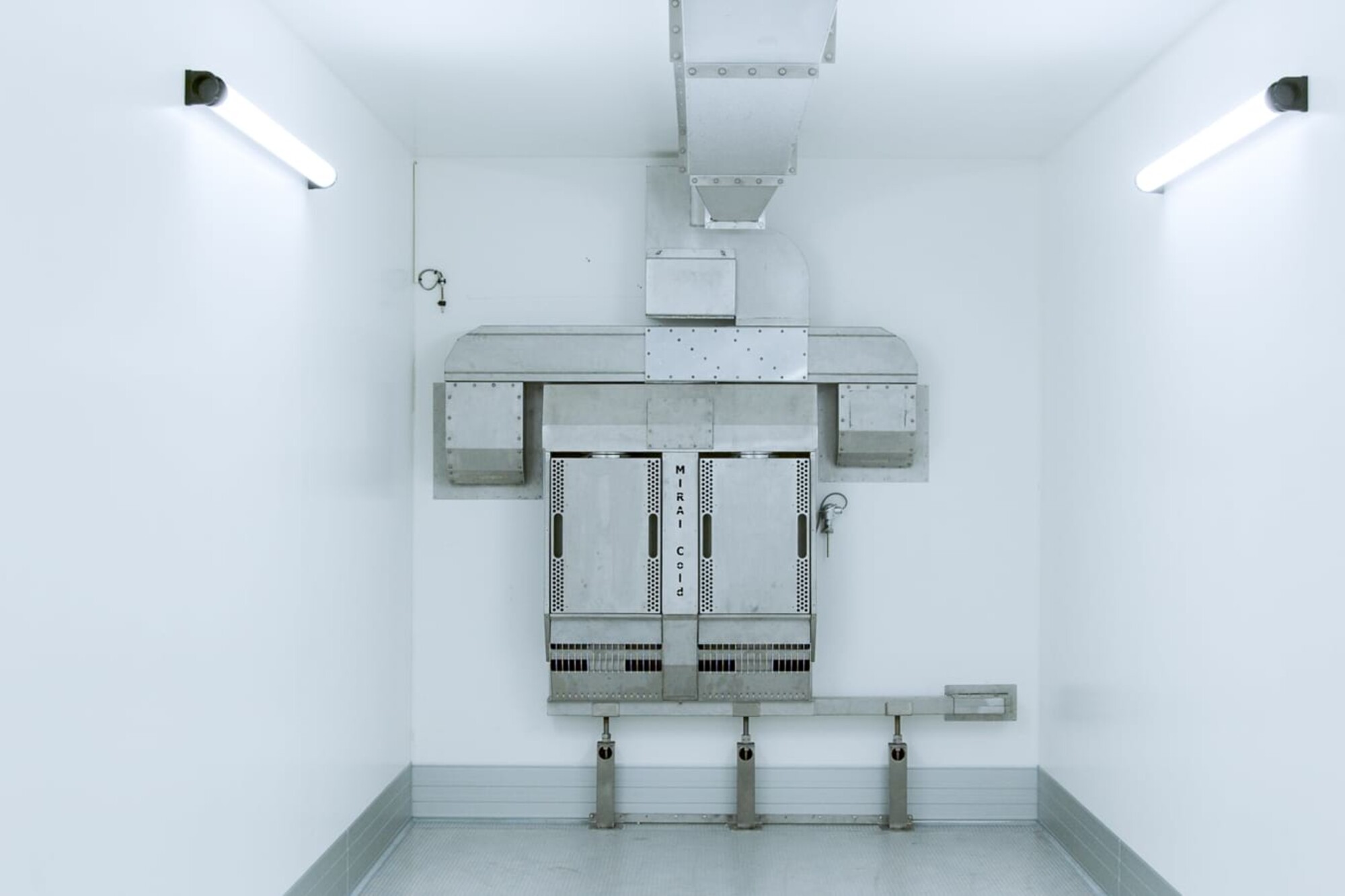 Wir führen mit Ihren Anforderungen eine detaillierte Kühllastberechnung durch und setzen dann die passende, effiziente Kältetechnik mit ausschließlich natürlichen Kältemitteln ein. Für die Tieftemperatur unter -40 °C kommt in der offenen Version die Kaltluft-Kühltechnik von Mirai Intex mit nur Luft (R729) zum Einsatz. Dieser sorgt mit seiner mechanischen Enteisung für eine homogene Temperaturverteilung, trockene Lagerluft mit einer Taupunktabsenkung von bis zu 20 °C und konstante Temperaturen ohne Abtauzyklen.